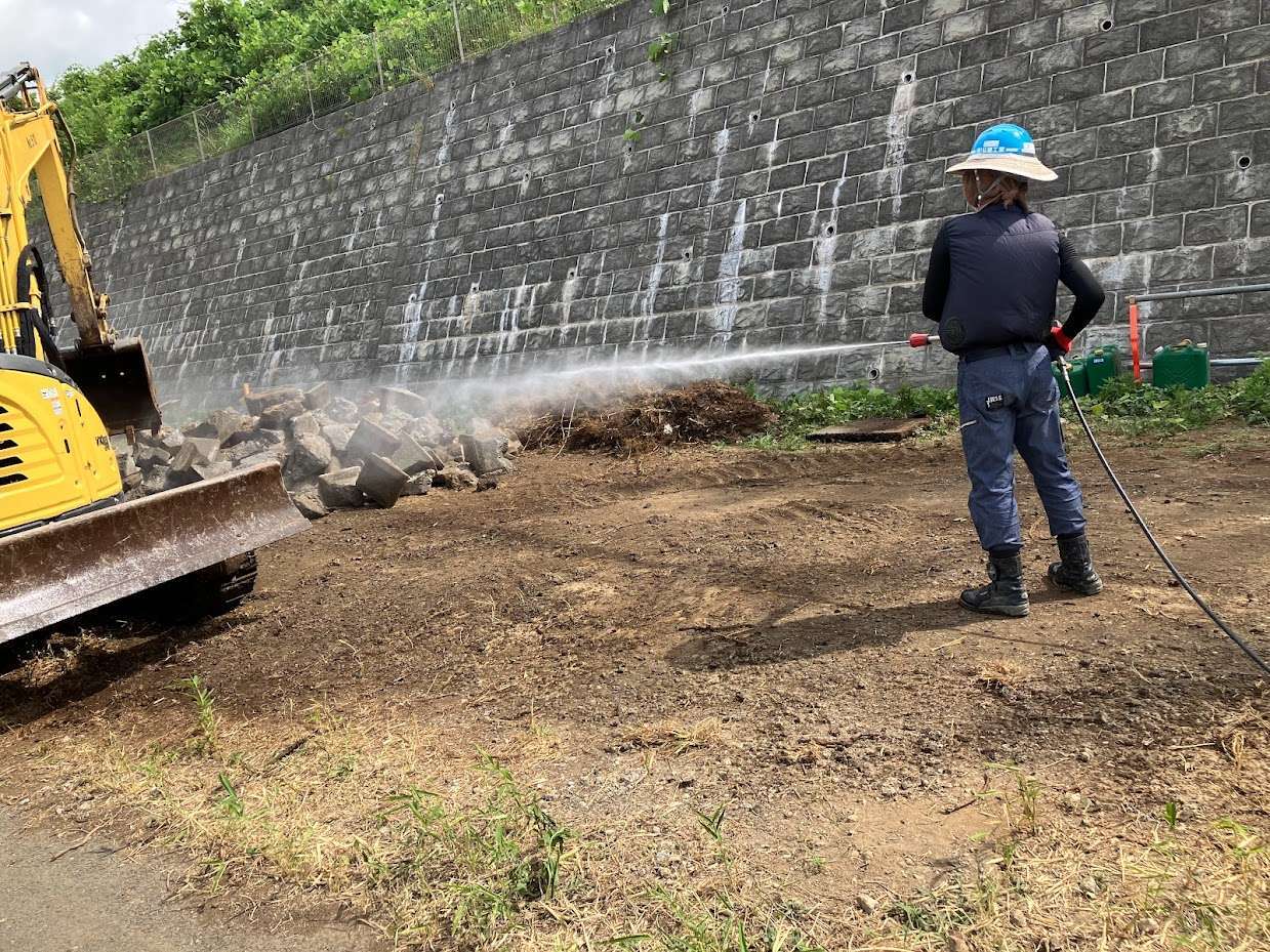 ハイウォッシャーで砂埃を立たないようにする先輩の写真♪