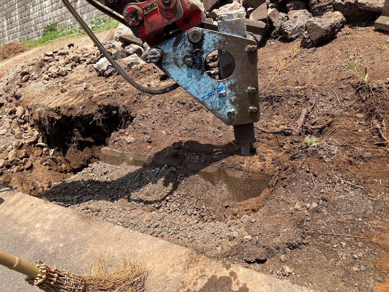 今回の様な工事の時は、以前ブログで紹介したジャンボブレーカーというユンボのアタッチメントを使用します!