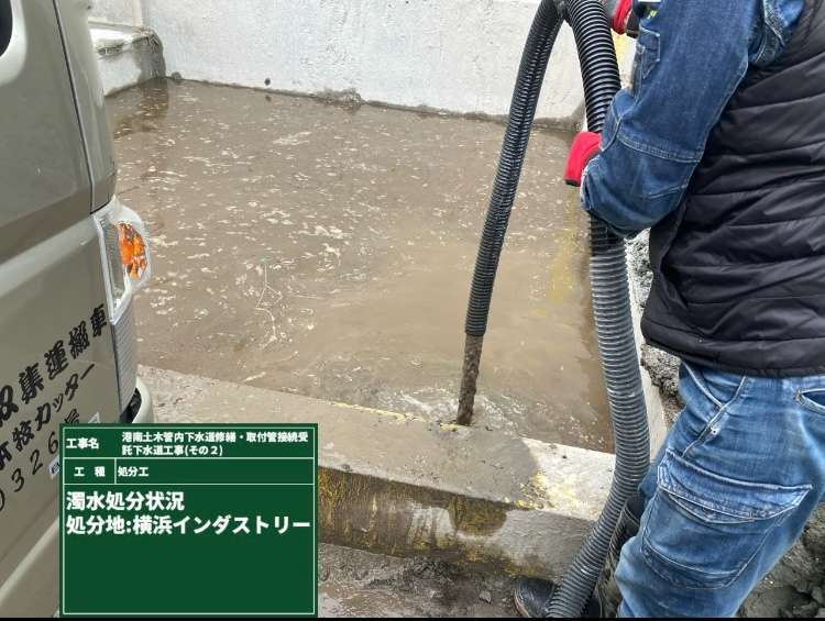 舗装切断の際に出る濁水は横浜インダストリー様に廃棄しに行きます(`・ω・´)ゞ