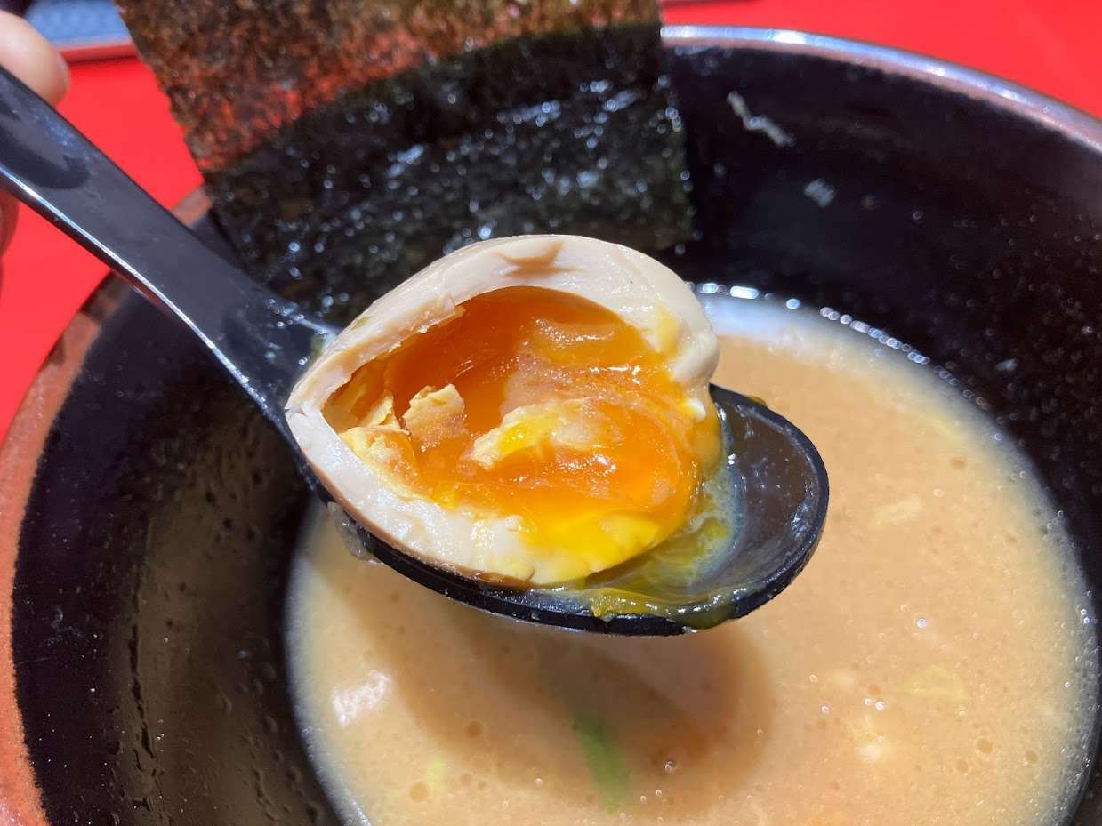 卵はしっかりと半熟でスープにくぐらせると黄身が逃げちゃうくらいトロトロでした♪
