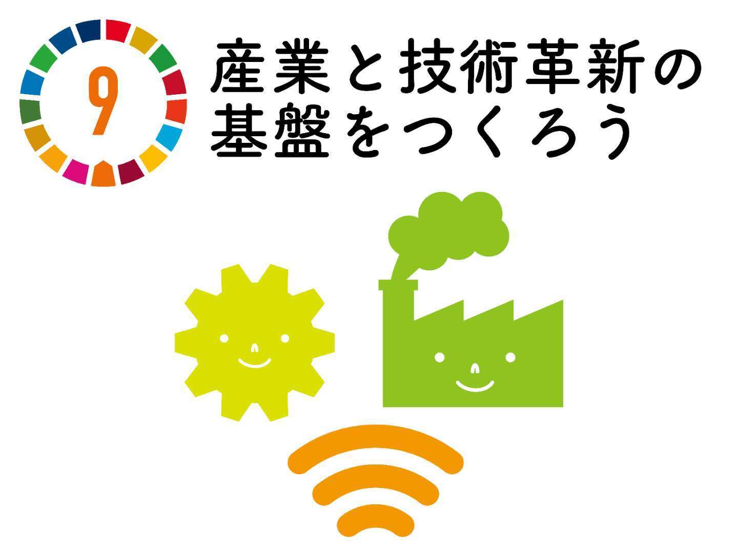 SDGs目標9「産業と技術革新の基盤をつくろう」とは、だれもが安心して快適に暮らせる社会をつくるために、暮らしを支える強靭(レジリエント)なインフラを構築するとともに、技術革新で新たな価値を作り、持続可能な産業を構築することを掲げた目標です。