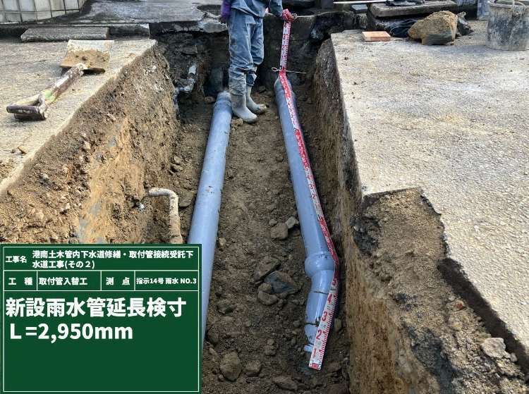 その他 L型側溝復旧工事 取付管入替工事 【横浜市港南区】取付管入替工事及びL型側溝復旧工事 工事名:港南土木管内下水道修繕工事(その2)工期:2024/2/29~3/11工事内容老朽化した雨水管、汚水管の入替工事を計10か所と入替工事に伴ったL型側溝復旧工事を行いました。 Before navigate_next After 場所 神奈川県横浜市港南区 1 / 1 前の施工事例 その他 【横浜市港南区】人孔蓋交換工事 次の施工事例 その他 【横浜市港南区】取付管入替工事及び遊歩道本復旧工事
