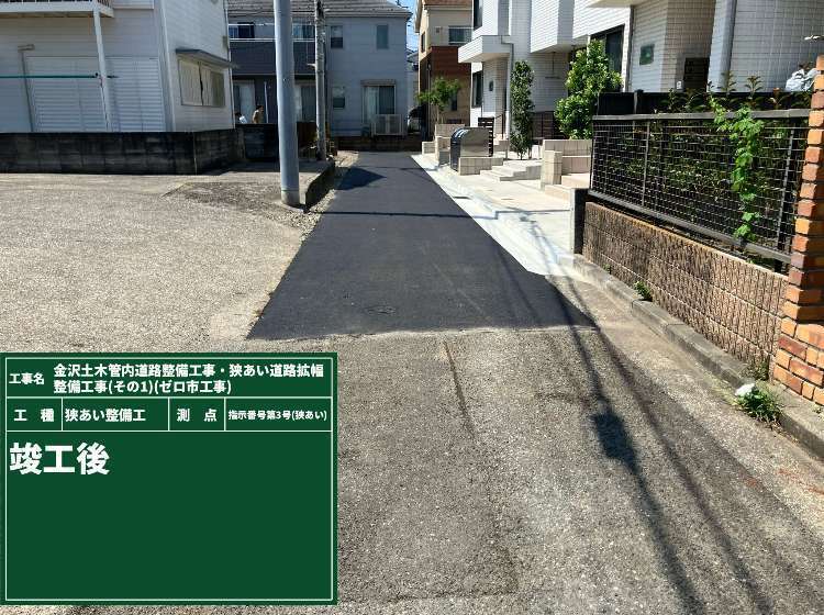 工事名:金沢土木管内道路整備工事・狭あい道路拡幅整備工事(その1)(ゼロ市工事)